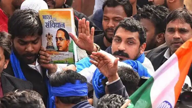 The Bhim Army chief Chandrashekhar Azad, with a copy of the Constitution in one hand, was on Friday back at Delhi’s Jama Masjid, almost a month after he was arrested following a protest against the citizenship act in the area.