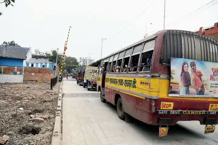 ⚫Seven minutes to cover a 950m-stretch from Girish Avenue to Cossipore Road via the level crossing on Jagannath Ghat Road. Vehicles have to access Jagannath Ghat Road after turning left after crossing the Chitpore bridge in Bagbazar.