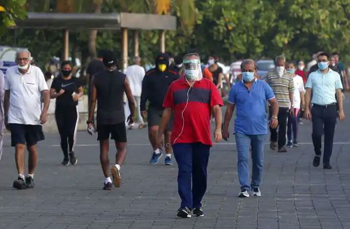 People walk and jog at the Marine Drive on the Arabian Sea coast in Mumbai, India, Monday, June 8, 2020. India is reopening its restaurants, shopping malls and religious places in most of its states after a more than 2-month-old lockdown even as the country continues to witness a worrying rise in new coronavirus infections.